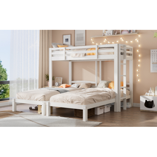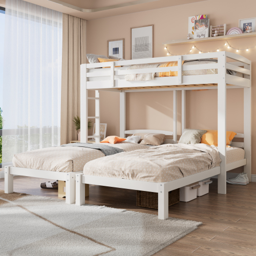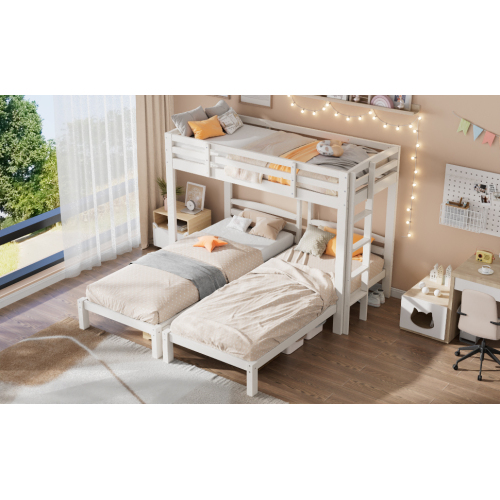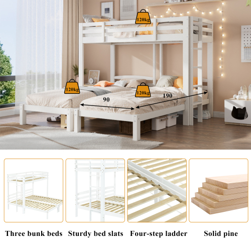 Product Name:[29061819KAA] Bunk Bed Triple Sleeper with Side Ladder for Children and Teens 3FT, White (90x190cm,90x200cm) (Mattress not included)