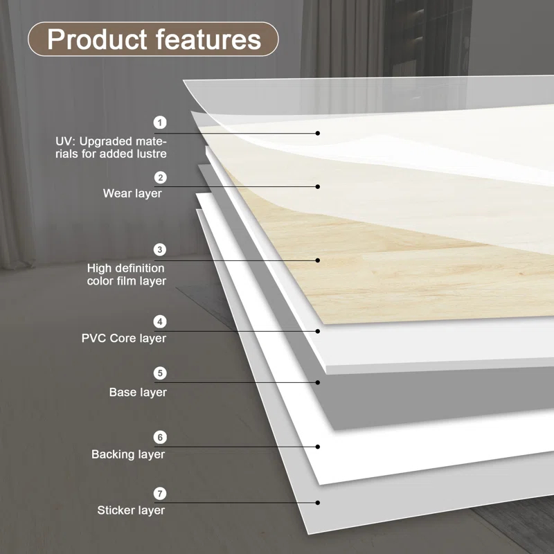 Our multi-layer system uses a scratch- and wear-resistant adhesive for long-lasting durability that doesn't tear easily; premium virgin core is covered with a 12-mil wear layer and finished with polyurethane and ceramic coating.