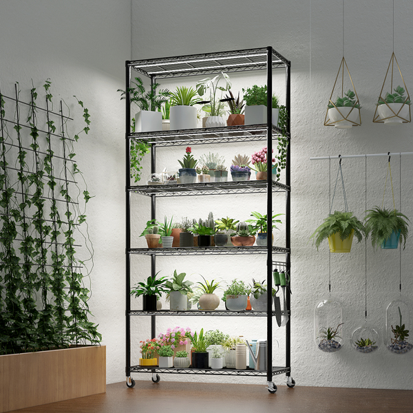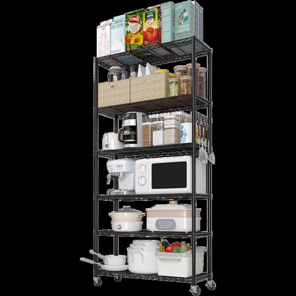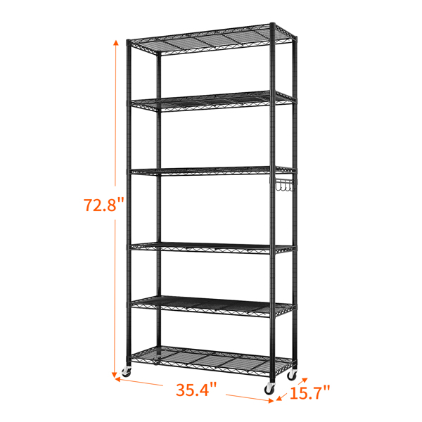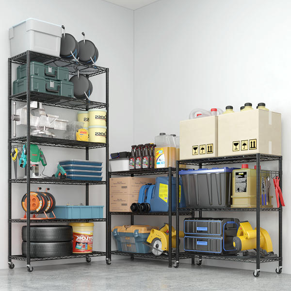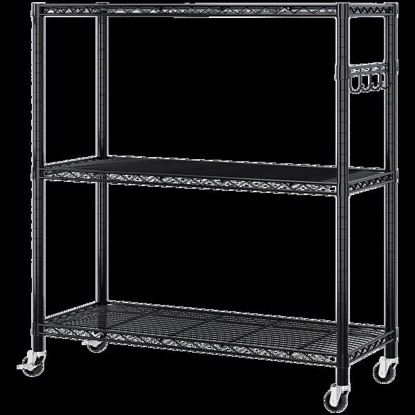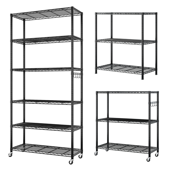 3. load-bearing industrial wheels (2 lockable). The wire storage rack with wheels can easily place products anywhere you need. Anti slip, will not scratch the ground. Metal storage shelves are the perfect choice for gift giving or housewarming.