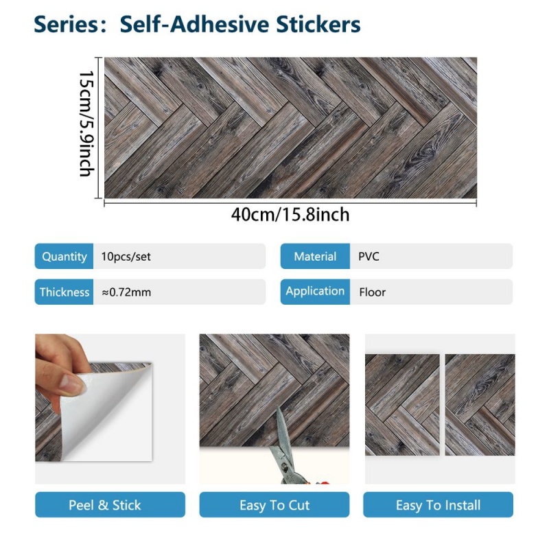 Dark Brown Wood Grain Self-adhesive PVC Floor Stickers, Suitable For Walls And Floors, Self-adhesive Waterproof Tile Stickers