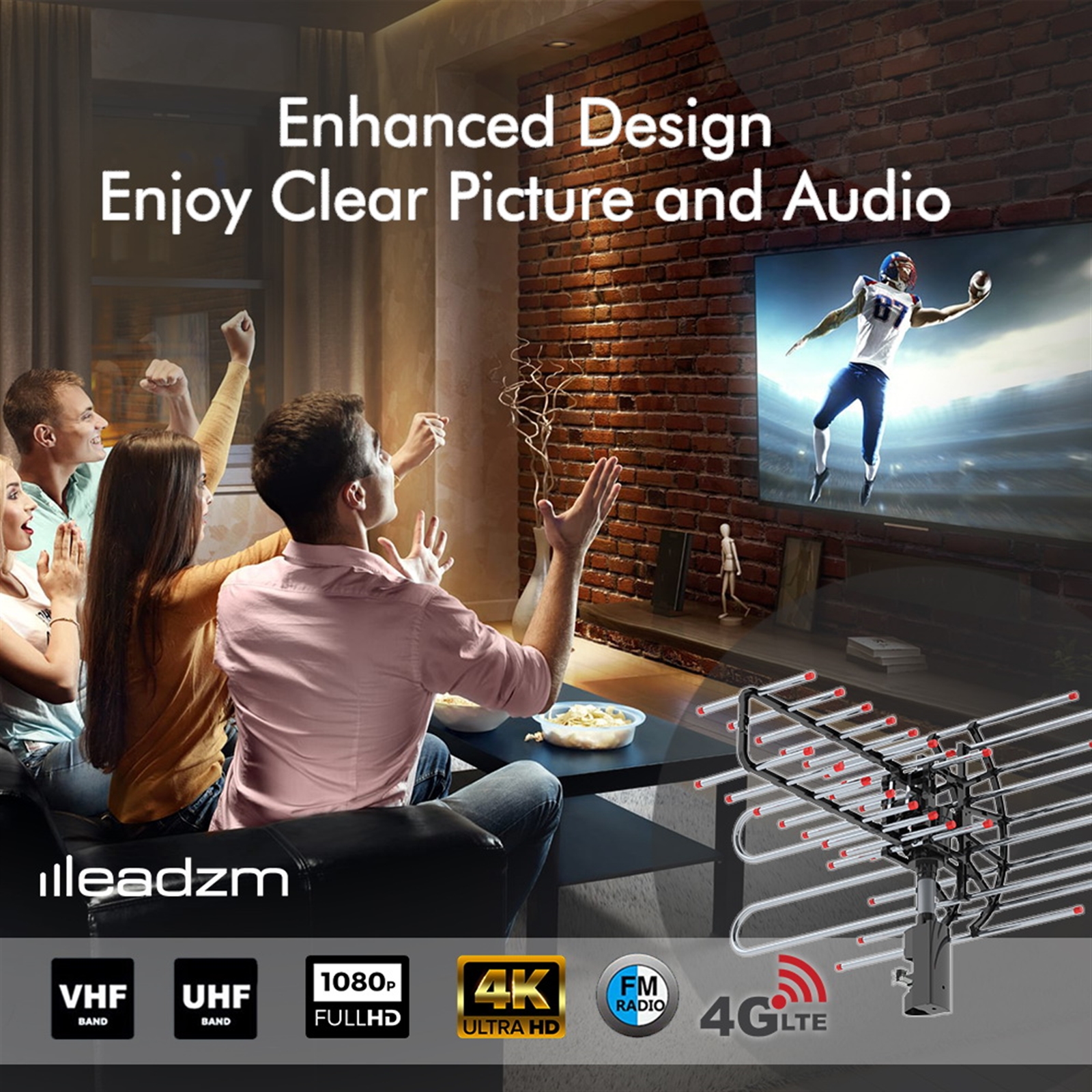 5. Durable and Secure: Adopting premium ABS and aluminum material, the HDTV antenna is durable, grounded, and lighting-protected