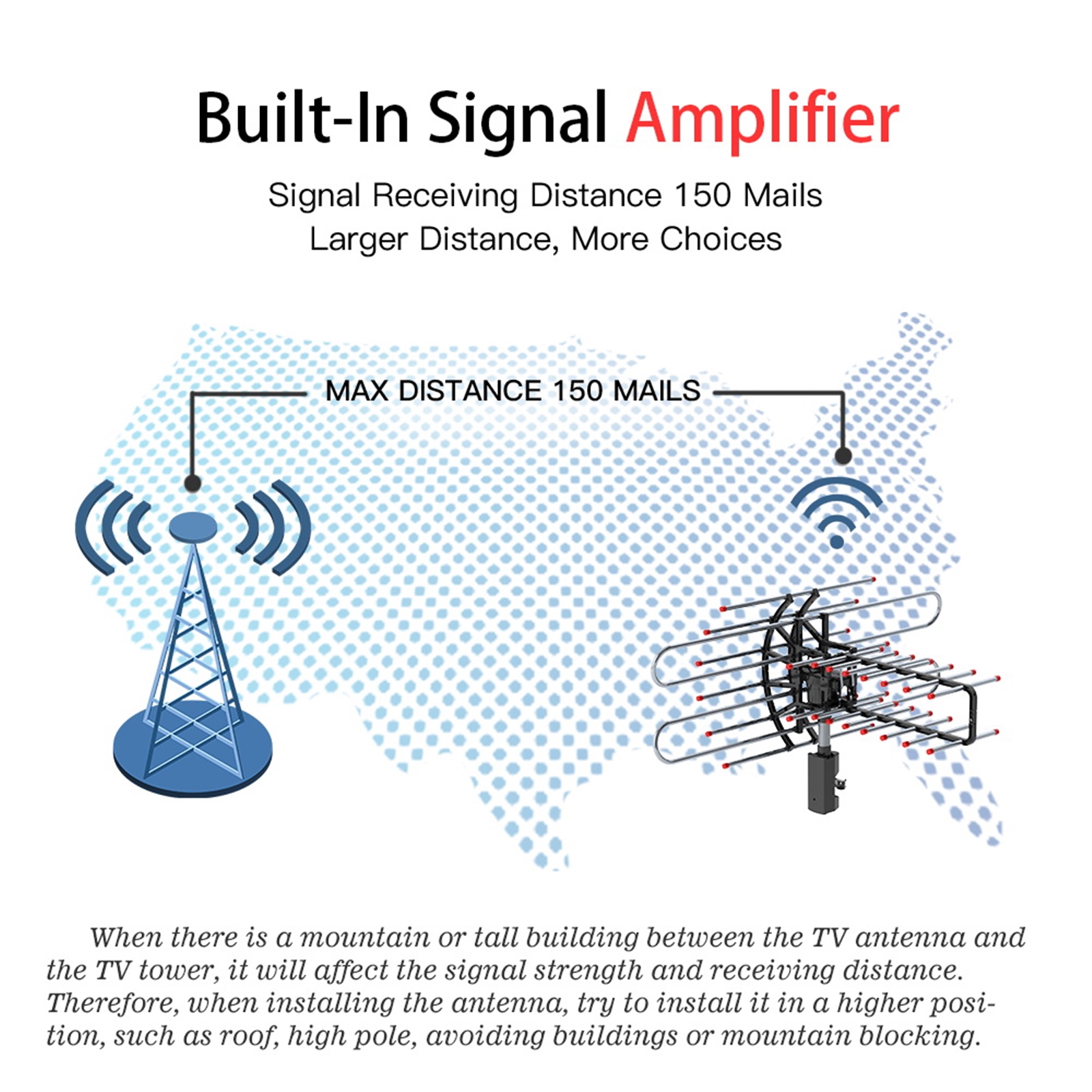 1. 150 Miles Reception Range and HD Picture: Built-in high gain booster and low noise amplifier, the HDTV can receive more digital HDTV UHF / VHF signals within 150 miles range and meanwhile provide high definition picture (Up to 1080P)