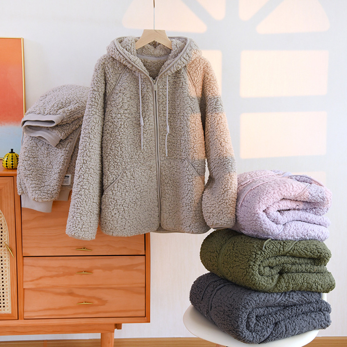 Color: Lamb couple hooded-female purple, Lamb couple hooded-female gray, Lamb couple hooded-female dark gray, Lamb couple hooded-male dark gray dark gray, Lamb couple hooded-male Gray, lambswool hooded couple-gentle beige