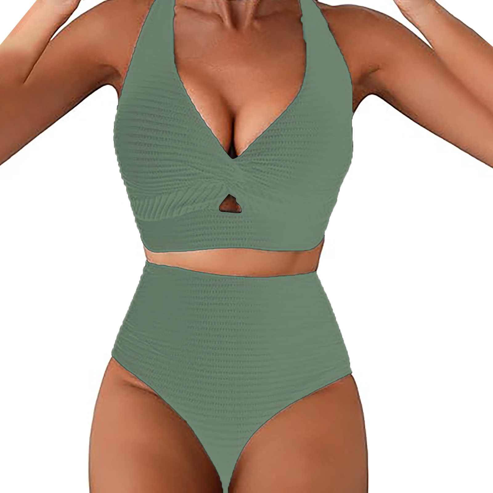 Women's Solid Color Rib Fabric Swimsuit Suit